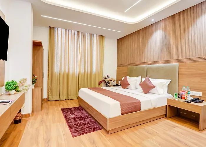 Located 2.2 km from the Mangal Mahadev Mandir, the 4-star Hotel The Grand Olive Aero Suites Near Delhi Airport New Delhi is only 6 minutes' walk from Worldmark. This New Delhi hotel features safety facilities including a safe deposit box.